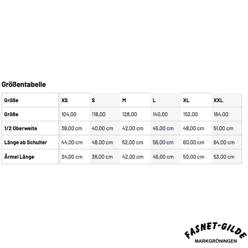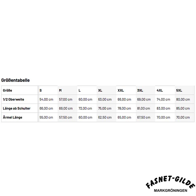 Veredelung: Einzelname auf der Vorderseite Brust, Fasnet-Gilde Markgröningen Schriftzug auf der Rückseite