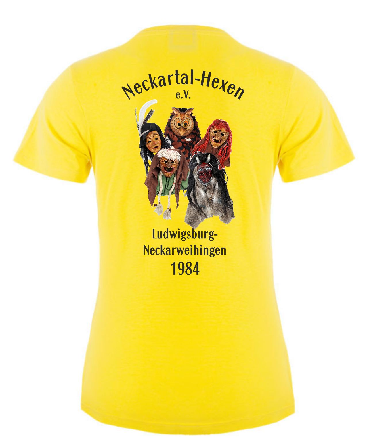 Veredelung: Einzelname auf der Vorderseite Brust mit Abteilung, Neckartal-Hexen Logo auf der Rückseite